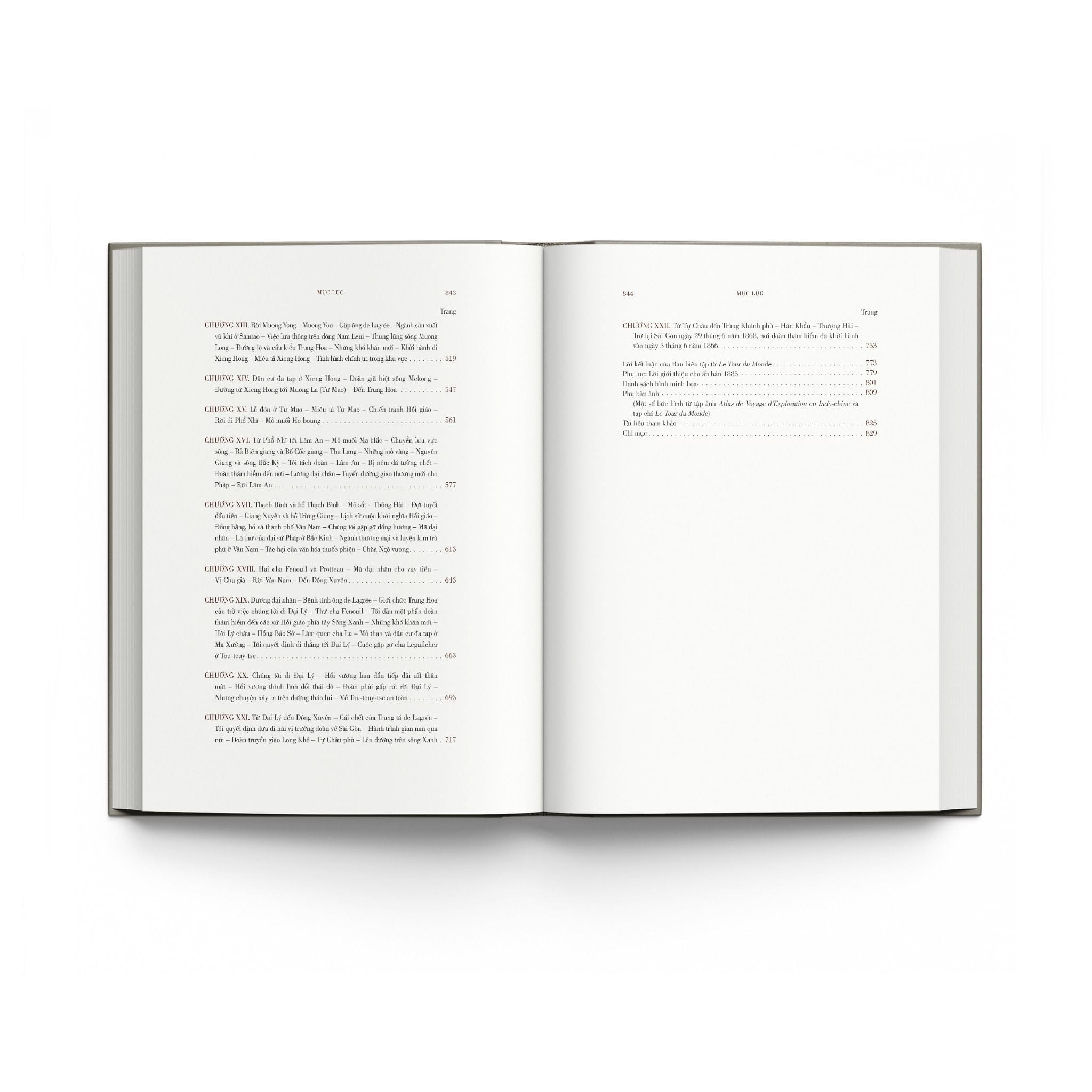 Sách tặng kèm bản đồ toàn cảnh Đông Dương, theo kết quả khảo sát của đoàn thám hiểm Pháp, được lập bởi Francis Garnier, phát hành năm 1873, kích thước 40 x 63cm.