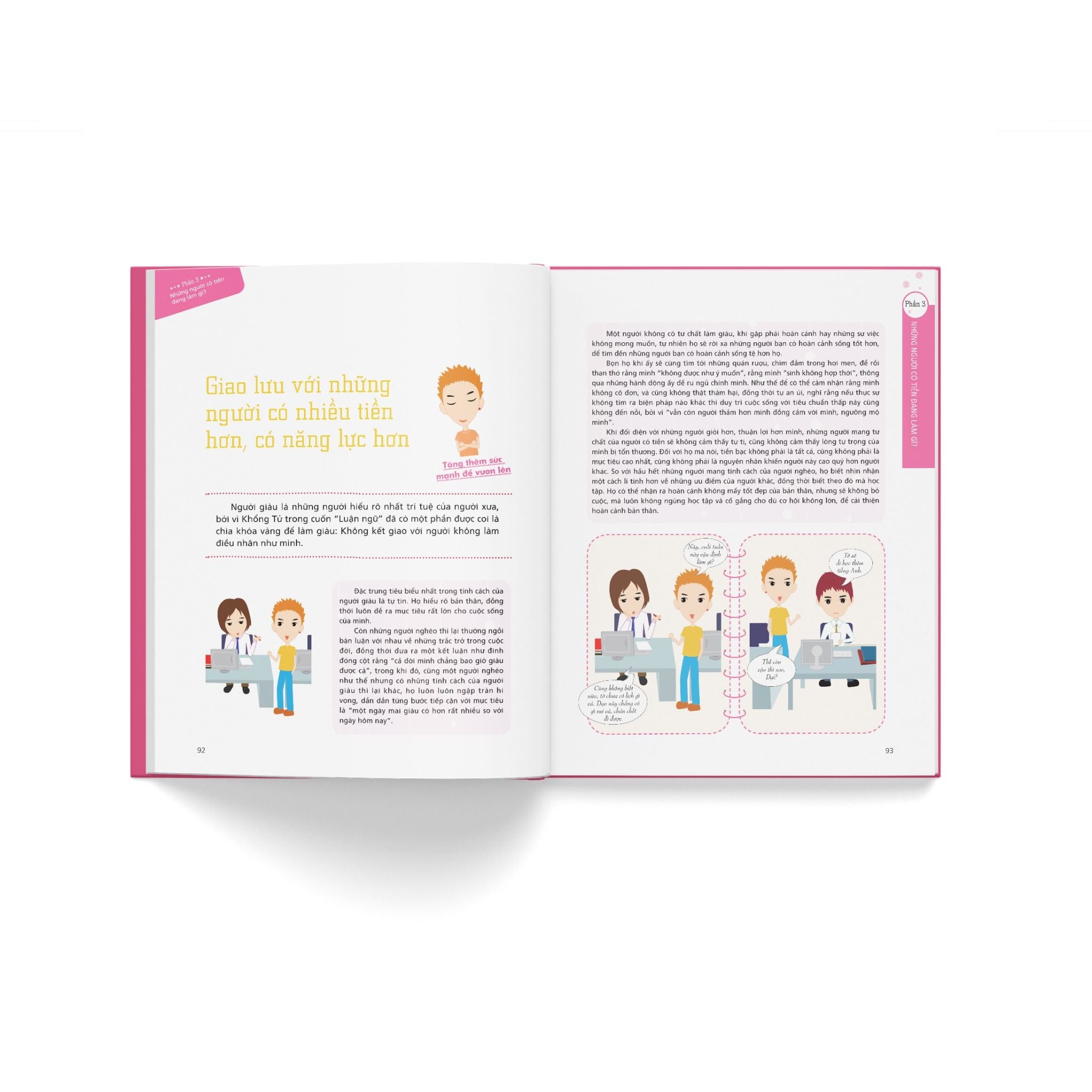Cuốn sách tranh màu hấp dẫn với những câu chuyện hàng ngày thường gặp sẽ khiến bạn thay đổi tư duy về việc làm giàu, từ đó thành công trong cuộc sống. Điều quan trong nhất vẫn là bản thân bạn. Làm giàu thực chất là một trò chơi đầy thú vị, ai cũng có thể học và chơi giỏi. Nhưng bạn phải khát khao chơi trò chơi đó và nỗ lực học hỏi cách chơi.